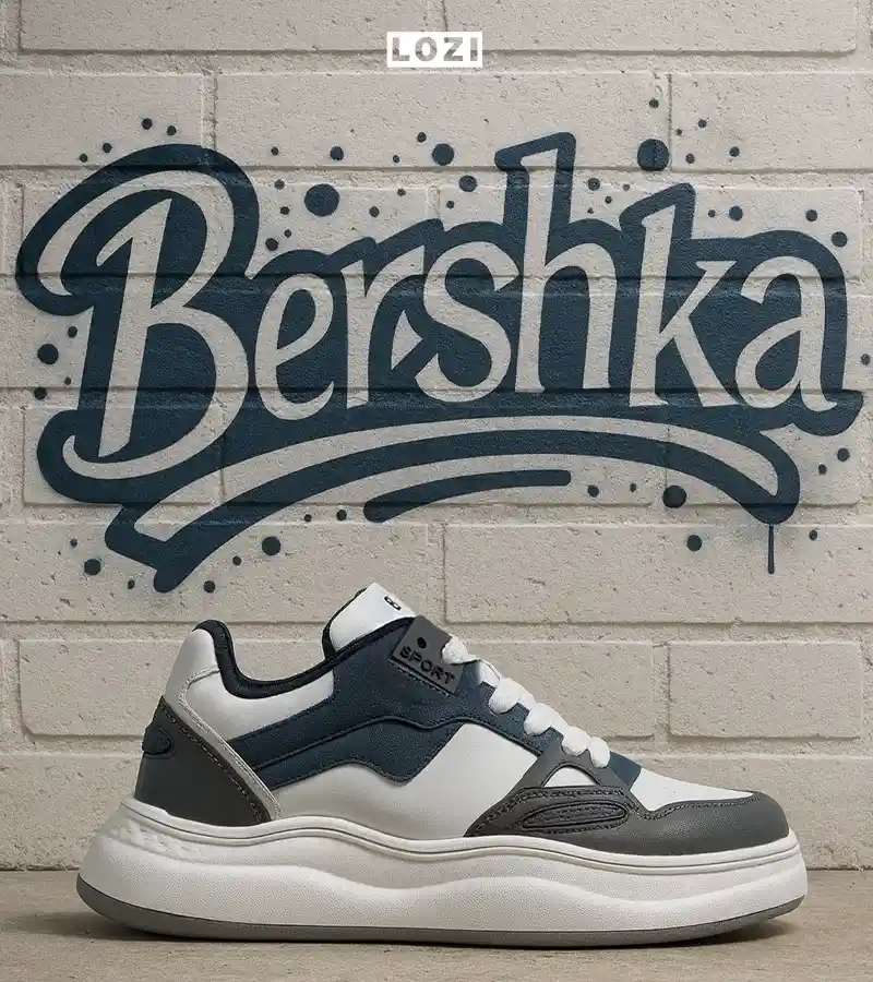 کفش کتانی کژوال مردانه و زنانه سفید طوسی سرمه ای BERSHKA مدل 8090