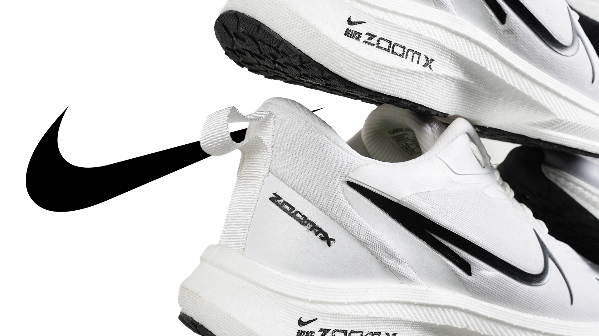 لوگوی نایک زوم ایکس بر روی کناره و کف کفش درج گردیده است , در جلو و بخش انتهایی کفش PVC لاستیک جهت ترمز و سرخوردگی بر روی سطوح لیز می باشد.