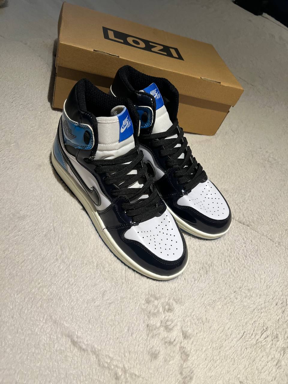 4 دیدگاه برای کفش کتانی ساقدار مردانه و زنانه مشکی سفید آبی NIKE jordan 1 مدل 7677